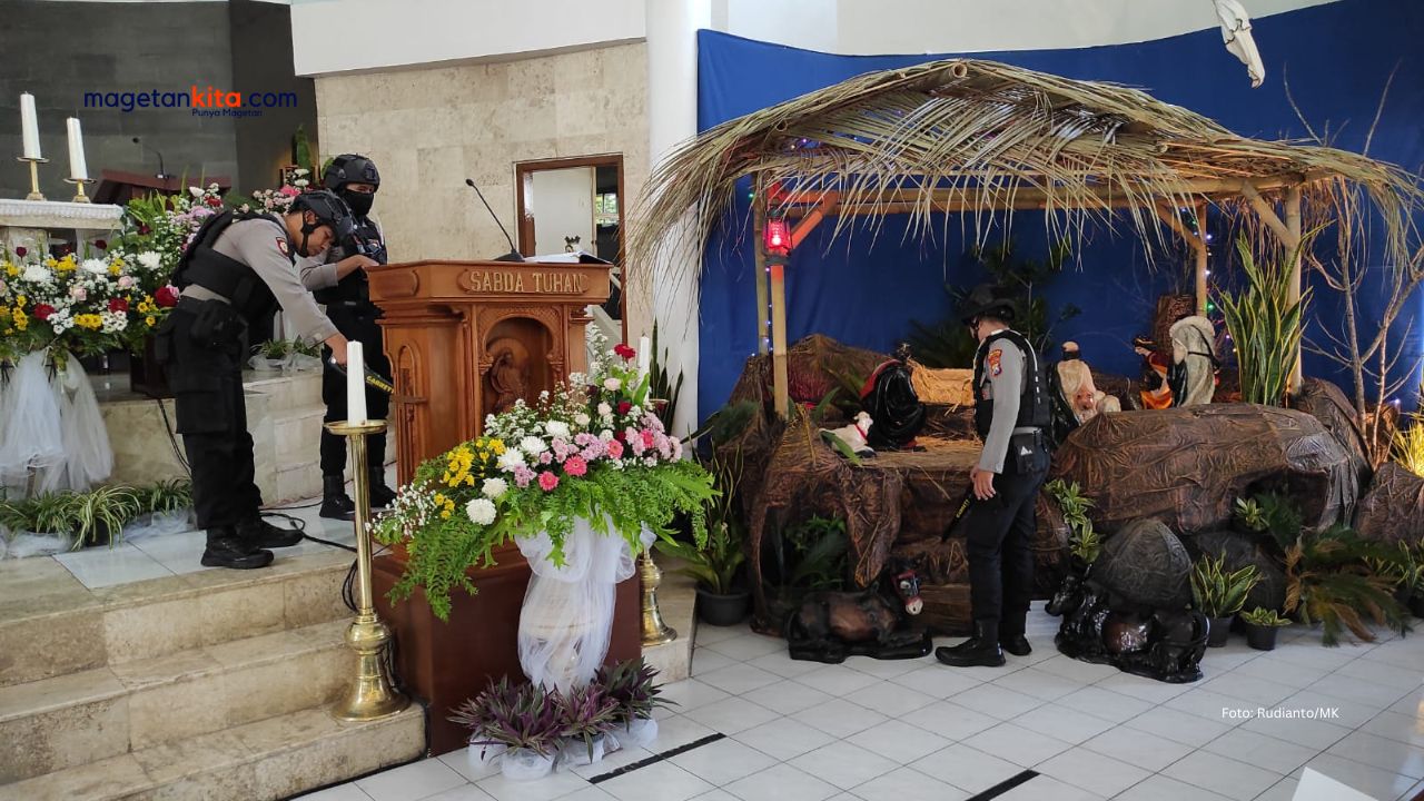Magetan – Polisi melakukan sterilisasi gereja di Magetan menjelang perayaan ibadah Natal, Minggu (24/12/2023). Kasi humas Polres Magetan AKP Budi Kuncahyo mengatakan, ada sebanyak 67 Gereja Kristen Protestan dan 4 Gereja Katolik digunakan untuk perayaan Natal di Magetan. “Tindakan sterilisasi ini menjadi langkah proaktif guna memastikan lokasi yang akan digunakan ibadah dalam perayaan ibadah Natal […]