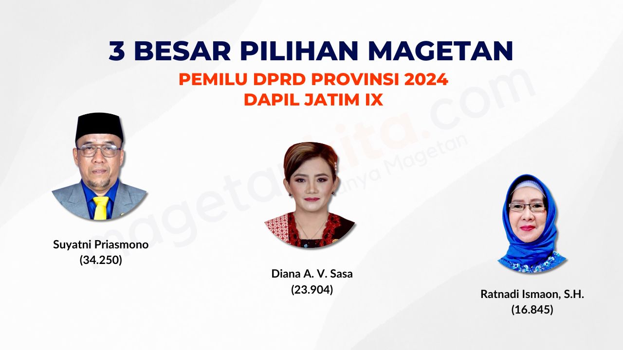 Magetan – Suara Magetan untuk anggota DPRD Provinsi di dapil 9 diberikan pada petahana DPRD Provinsi Jatim. Secara urutan terbanyak, di Magetan Suyatni Priasmoro (Nasdem) meraih 34.250 suara, lalu Diana Sasa (PDI Perjuangan) 23.904 suara, dan Ratnadi Ismaon (16.845). Sayangnya suara yang didapat dari Magetan itu sepertinya tak cukup mengantarkan ketiganya kembali duduk sebagai anggota […]